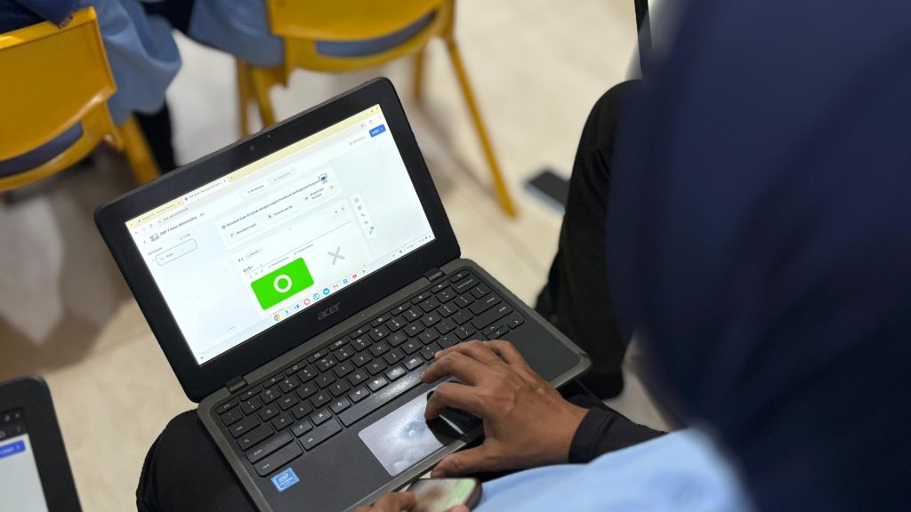 Sesi ini menjadi lebih menarik karena keterlibatan aktif para guru peserta. Setiap guru berkesempatan langsung mencoba aplikasi yang dipaparkan oleh narasumber secara langsung, sehingga tidak hanya memahami teori, tetapi juga praktik pemanfaatan aplikasi tersebut dalam pembelajaran sehari-hari. Metode ini membuat guru dapat merasakan pengalaman langsung dan menyiapkan strategi penerapan yang sesuai dengan kebutuhan siswa SLB.
